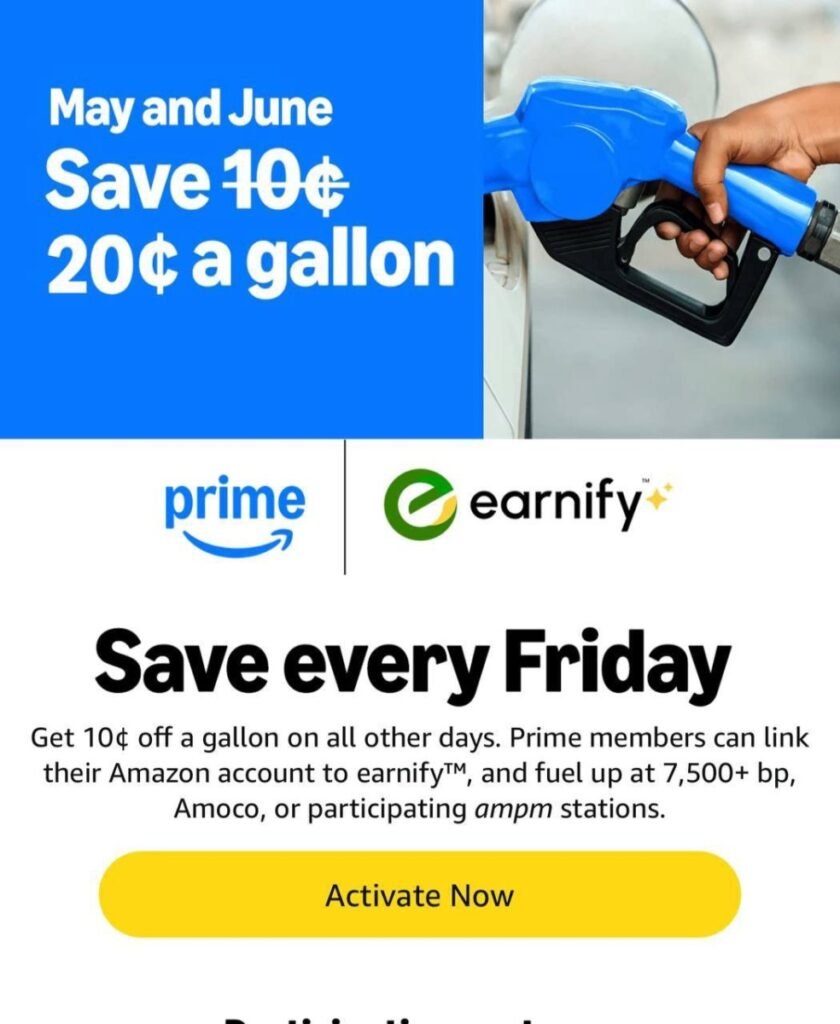 • ? Prime Members can now save $0.20 with every gallon of gas with your next fill-up!