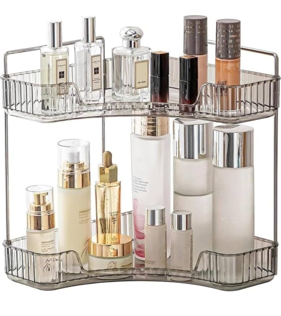 Keep your bathroom countertop neat and stylish with this Grey 2-Tier Vanity Organizer. Perfect for skincare, makeup, toiletries, lotions, and perfumes, it provides convenient storage while saving space. Now available for just $10.99 at Amazon.
