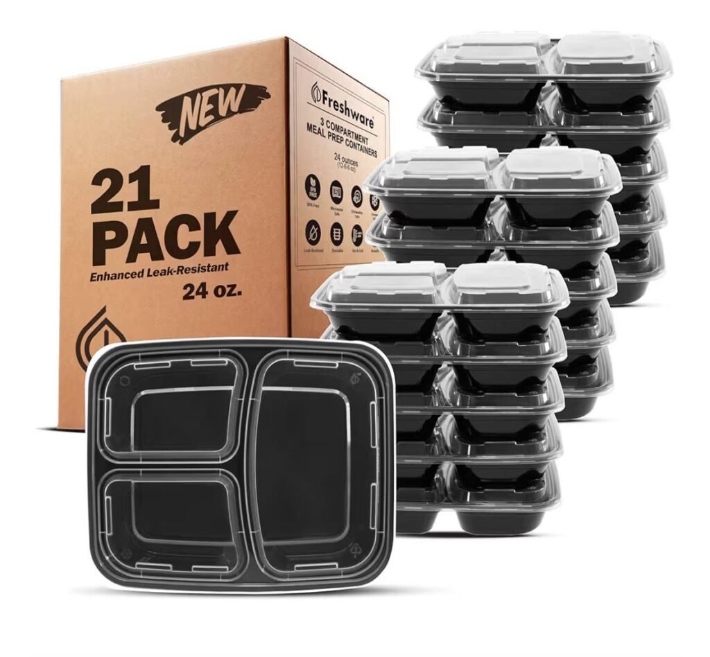 • 21-pack of reusable 3-compartment containers (24 oz each)