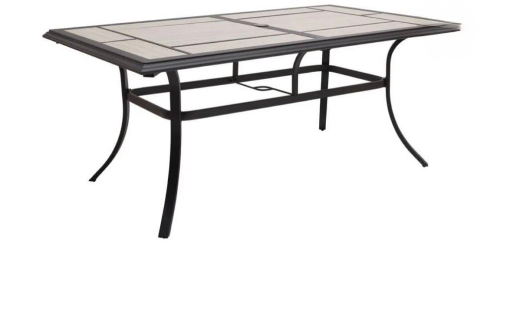 Ceramic Tile Top Rectangular Dining Table with Umbrella Hole, Gray Tabletop, Black Frame Finish, Seats 6