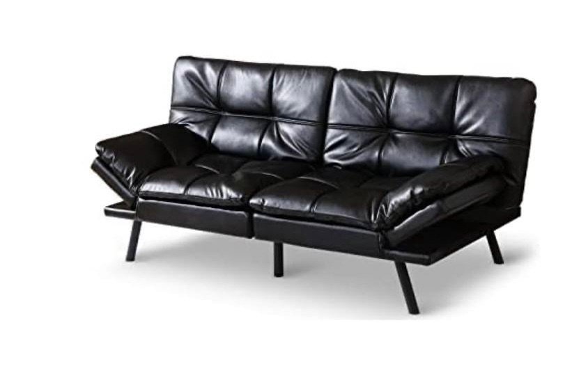 $107.99 Faux Leather Futon Sofa Bed/Memory Foam Couch