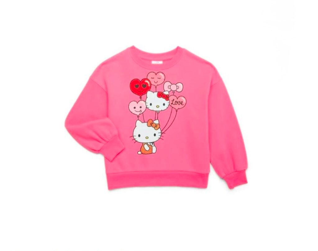 $11.98 Hello Kitty Love Balloons Girls Valentine’s Day Fleece Sweatshirt, Sizes 4-16