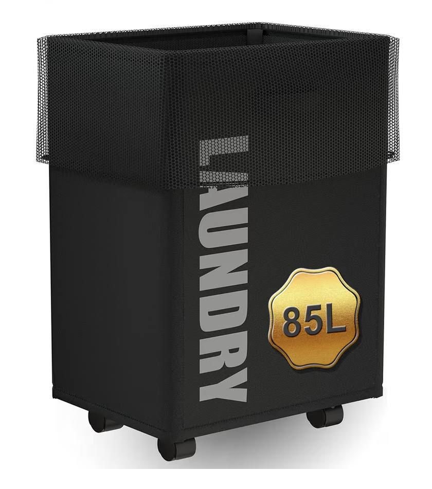 - Laundry hamper with built-in wheels for easy rolling and transport