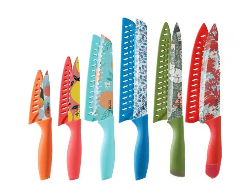 $11 Carote 12 Pcs Kitchen Knife Set, Stainless Steel with Nonstick Creamic Coating, Dishwasher Safe