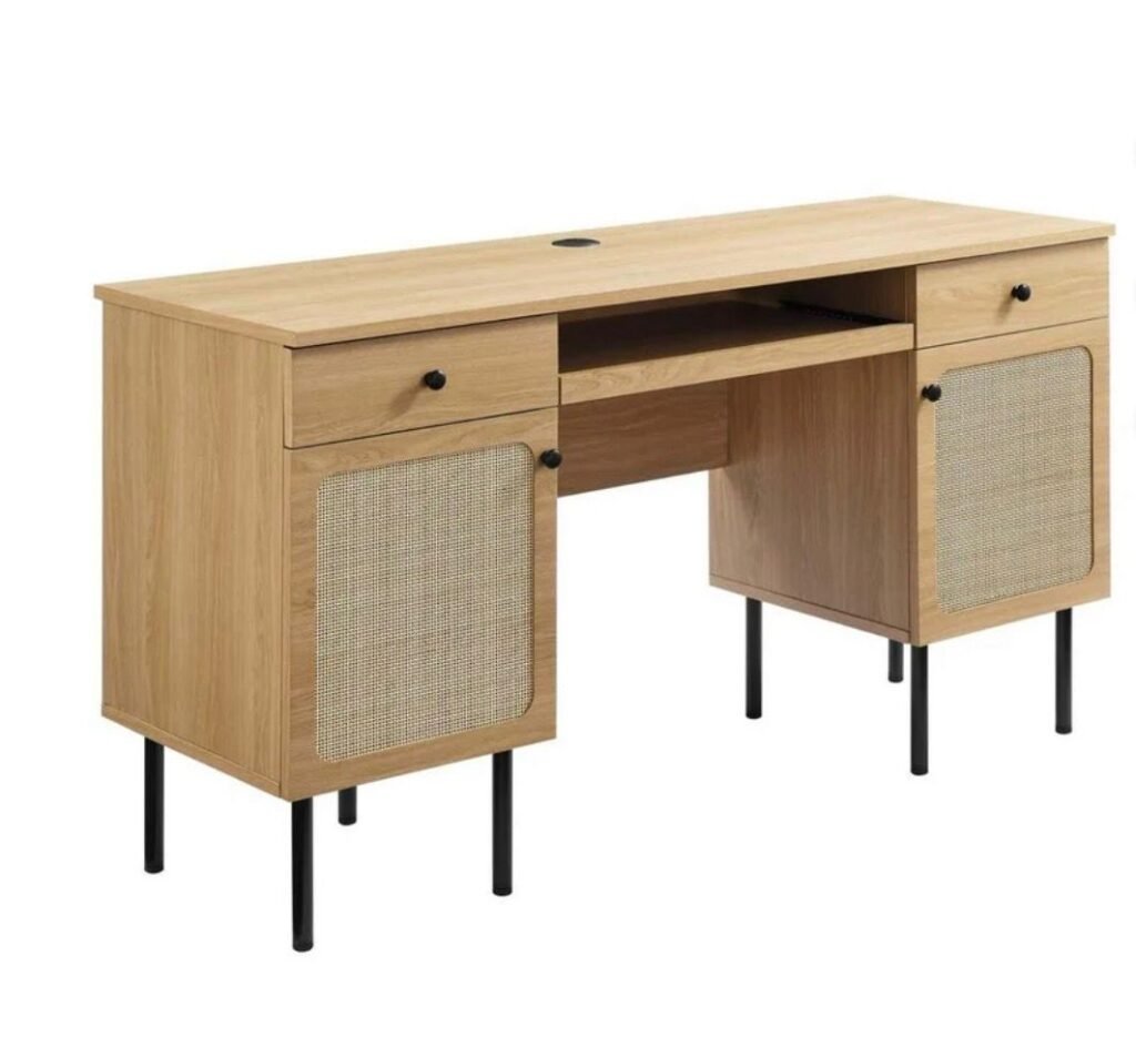 - Modern office desk with an elegant oak finish