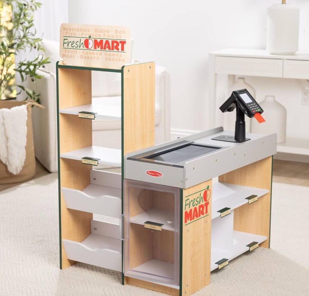 The Melissa & Doug Fresh Mart Pretend Grocery Store is currently on sale for $115.99, marked down from the regular price of $294.99. This popular pretend play set encourages imaginative play while helping kids develop social, math, and communication skills. Designed with realistic features, it allows children to enjoy hours of role-playing fun as shoppers or cashiers. The sturdy wooden construction makes it a long-lasting addition to any playroom or classroom. This deal is ideal for gifting or upgrading your child’s pretend play space. Availability and pricing may change quickly.