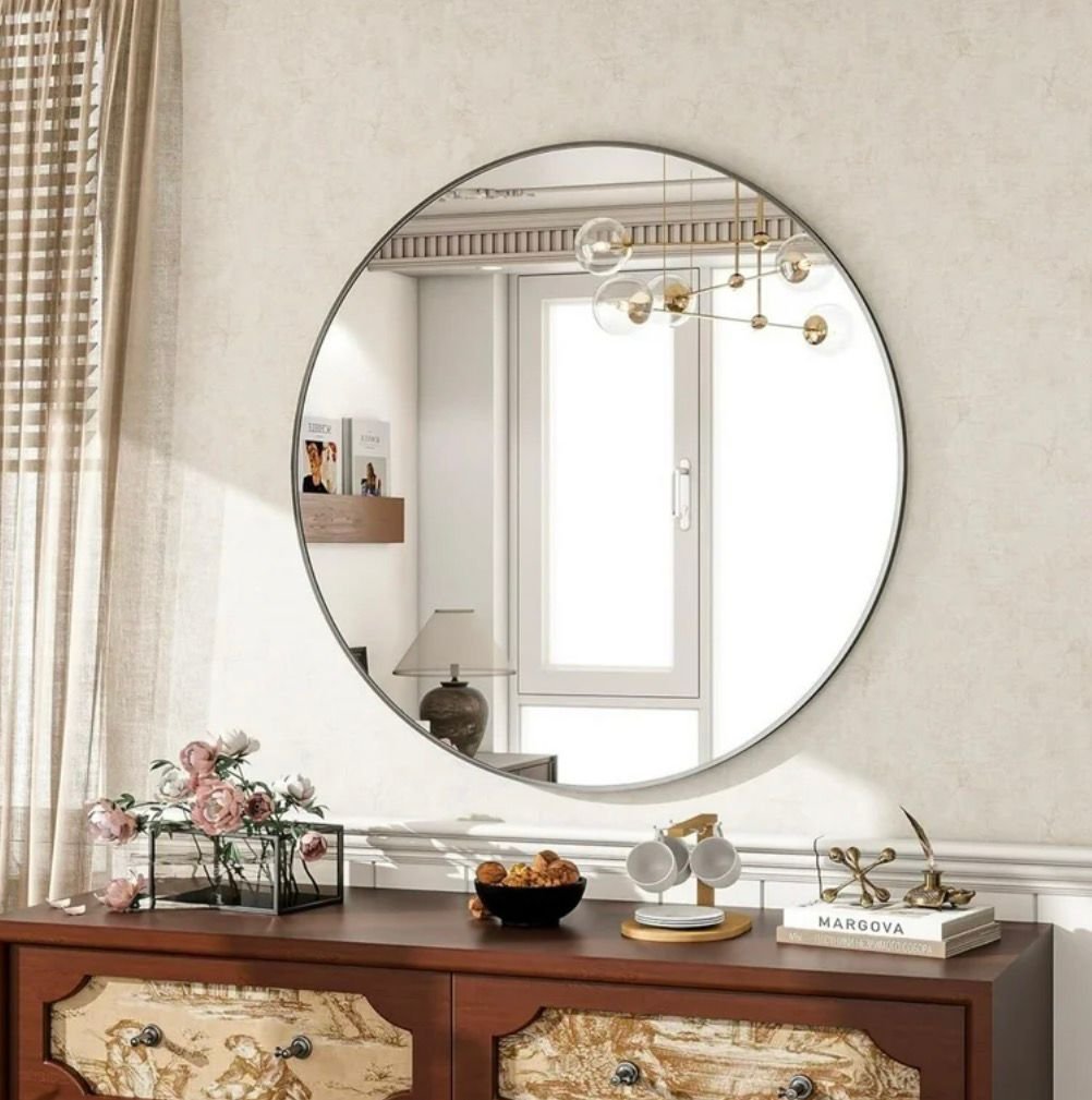 - 20-inch round mirror ideal for bathroom or vanity use