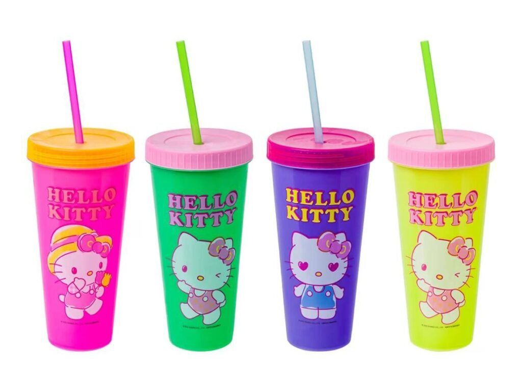 - Set of 4 Hello Kitty-themed color-changing plastic tumblers