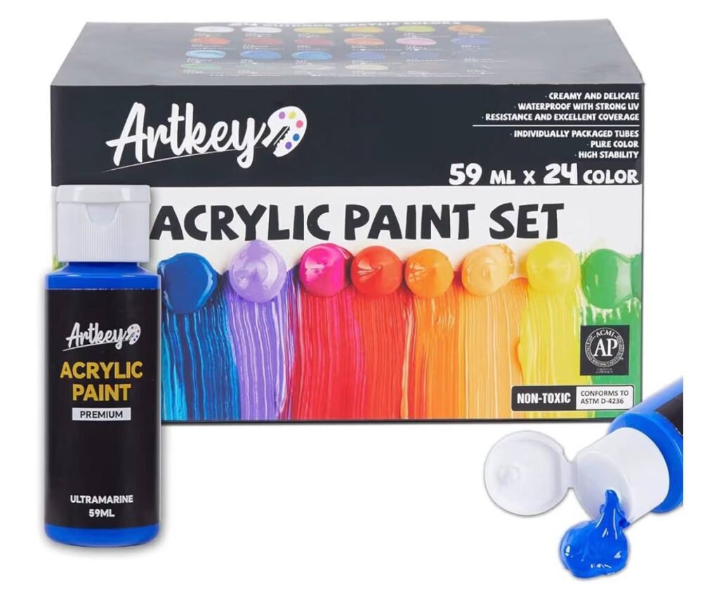 This Acrylic Paint Set includes 24 vibrant 2 oz/59 ml bottles for just $12, making it an excellent value for beginners, hobby painters, crafters, and artists of all levels. The rich pigments are great for canvas painting, wood crafts, DIY décor, school projects, and holiday crafting.