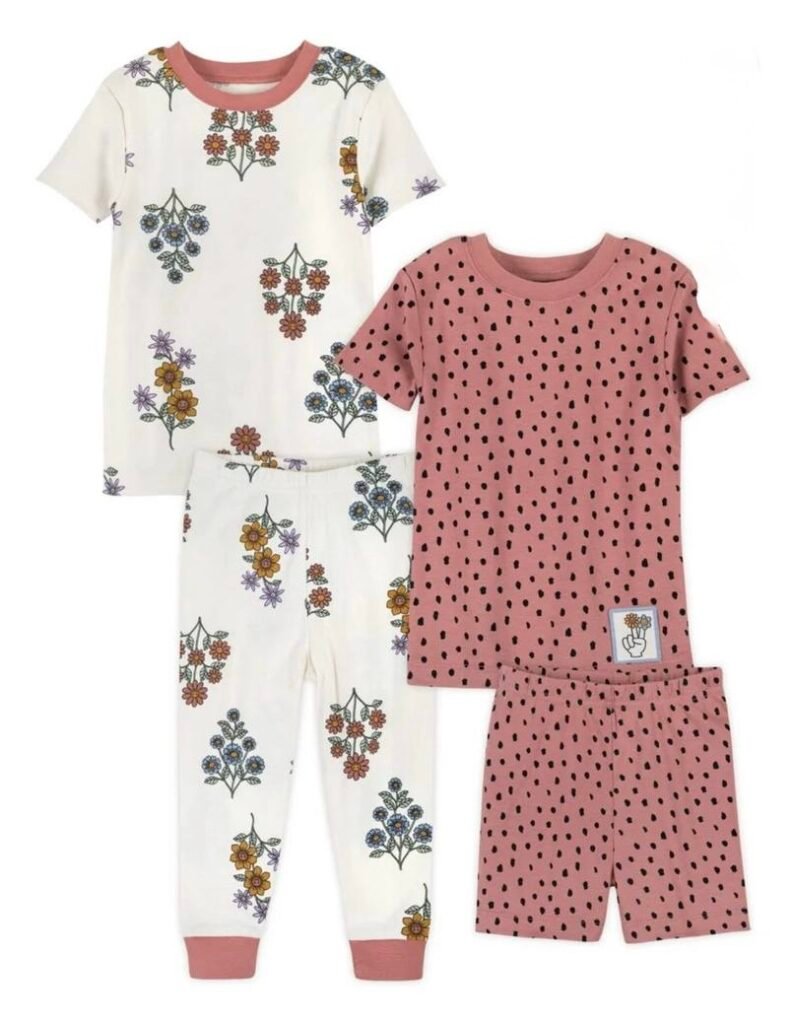 Little Star Organic Baby & Toddler Girl Short Sleeve Snug Fit Sleepwear Set, 4-Piece, Sizes 9M-5T