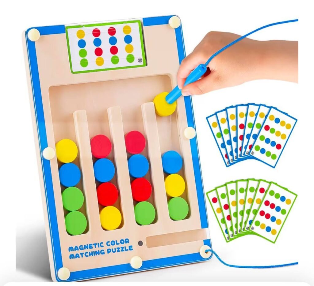 These Montessori-inspired magnetic wooden toys are designed to help kids develop fine motor skills, hand–eye coordination, and problem-solving abilities through hands-on play. Made from smooth, child-safe materials, this set encourages learning through creativity and engagement while keeping little ones entertained.