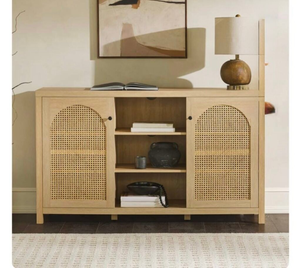 $120.00 reg $319.99 Walker Edison 2-Door Modern Rattan & Wood Sideboard in Coastal Oak