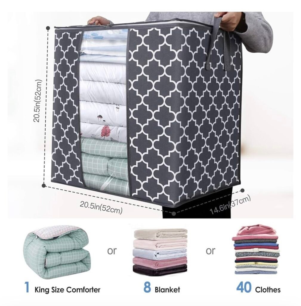 $13.59 reg $35.99 WISELIFE Storage Bags [3 Pack/100L] Large Blanket Clothes Organization and Storage Containers for Comforters,Bedding, Foldable Organizer with Reinforced Handle, Clear Window, Sturdy Zippers,Gray