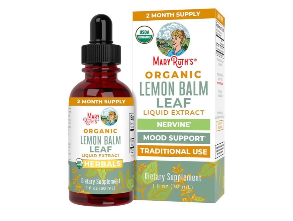 - 1 fl oz liquid extract formulated with organic lemon balm leaves