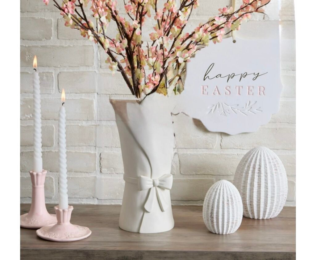 $14.98 Easter Large White Ceramic Vase with Bow, 9.84 in, by My Texas House