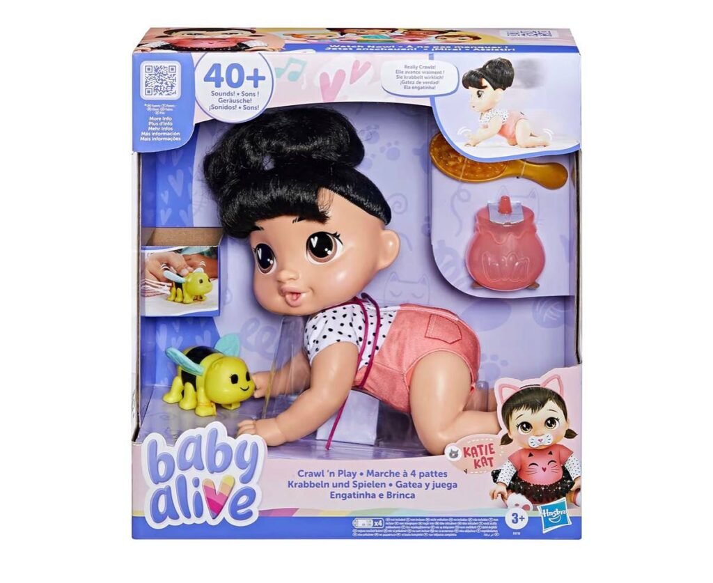 The Baby Alive Electronic Crawling Baby Doll Set featuring Katie Kat is on sale for $14.xx, down from $39.99. This 10.75-inch interactive doll has black hair and moves around, providing engaging and realistic play for children. It’s a fun and educational toy perfect for encouraging imaginative play and developing nurturing skills.