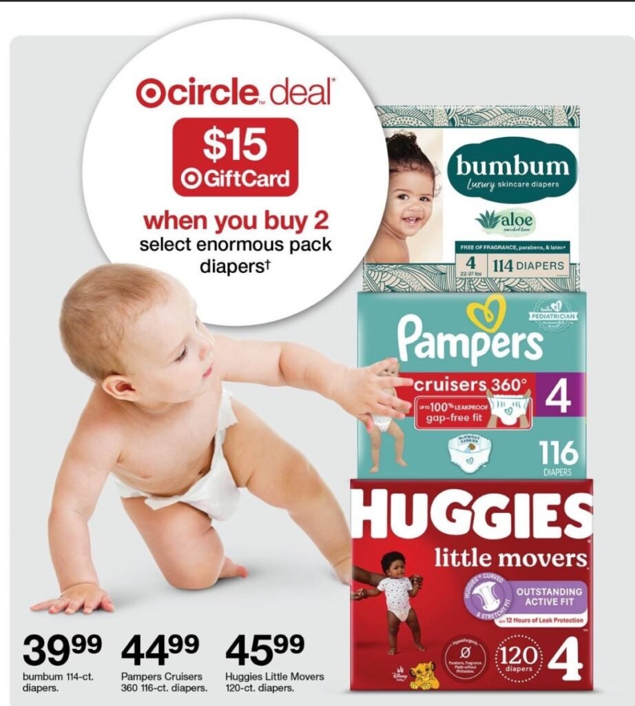 $15 GiftCard when you buy 2 Select Diaper and Training Pants packs