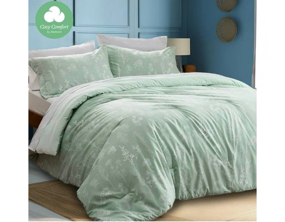 Cozy Comfort 3 Pieces Sage Green Floral Comforter Sets, 1 Soft Reversible Botanical Flowers Comforter and 2 Pillow Shams, King Size