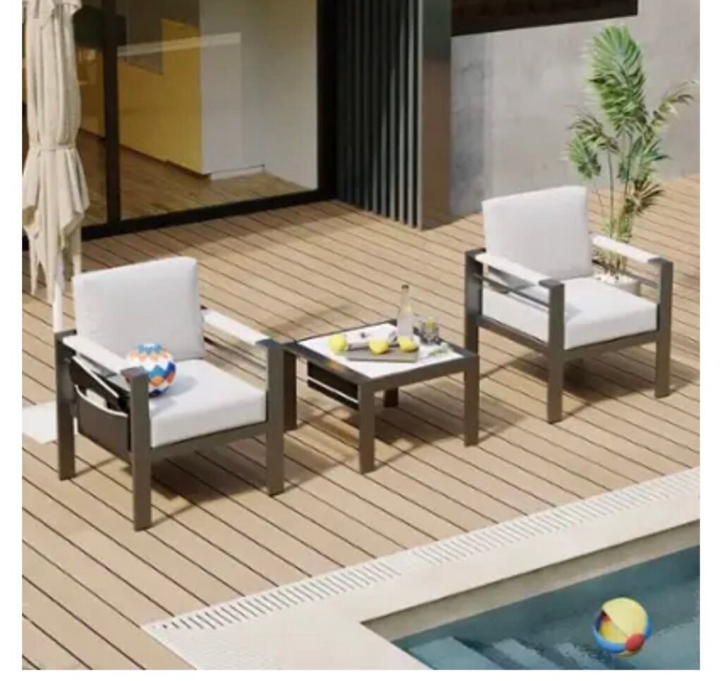 Set with Cushions, LED Side Table, and Removable Side Pocket for Two – Gray