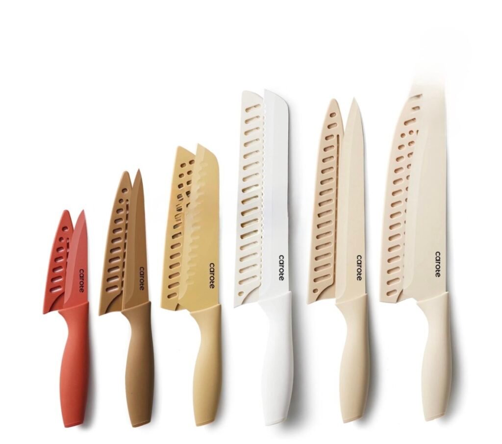 $16.19 Reg $35.96 Carote 12 Pcs Kitchen Knife Set, Stainless Steel Knife Set with Creamic Coating