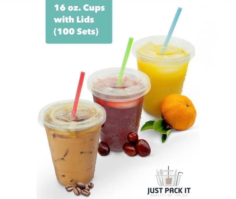 $16.79 [100 Sets – 16 oz] Clear Plastic Cups with Lids