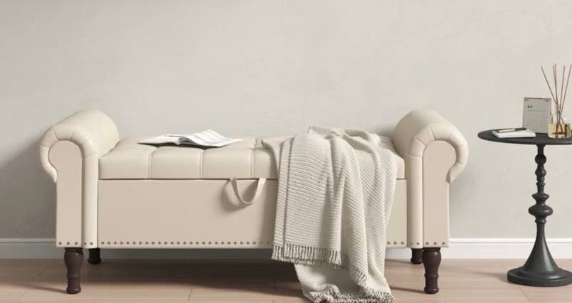 $166.xx Reg $213.99 – Faux Leather Storage Bench with Button-Tufted Seat and Roll Arms