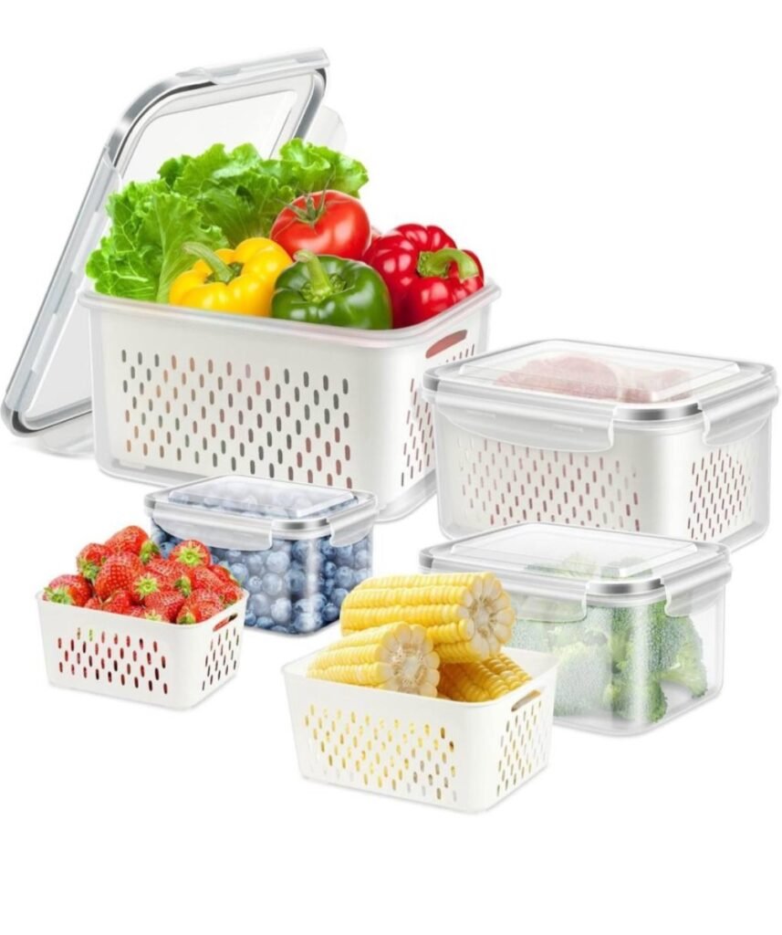 $17.49 reg $34.99 12 Pieces Fruit Storage Containers For Fridge, BPA-Free Fresh Food Containers with Removable Colanders and Airtight Lids,w