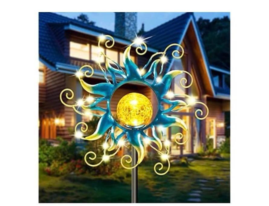 $18.99 Blue Metal Sun Crackle Glass Globe Stake