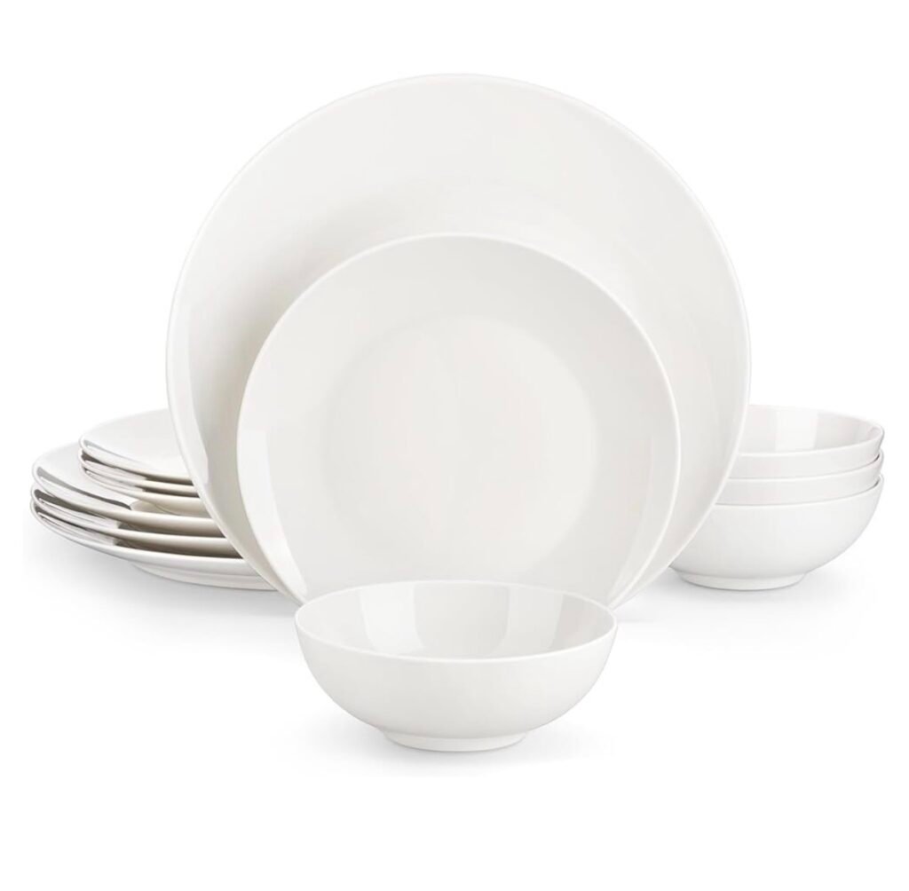 $19.99 Bone China Dinnerware Set for 4, 12 Pieces Cream-White Plates and Bowls Sets