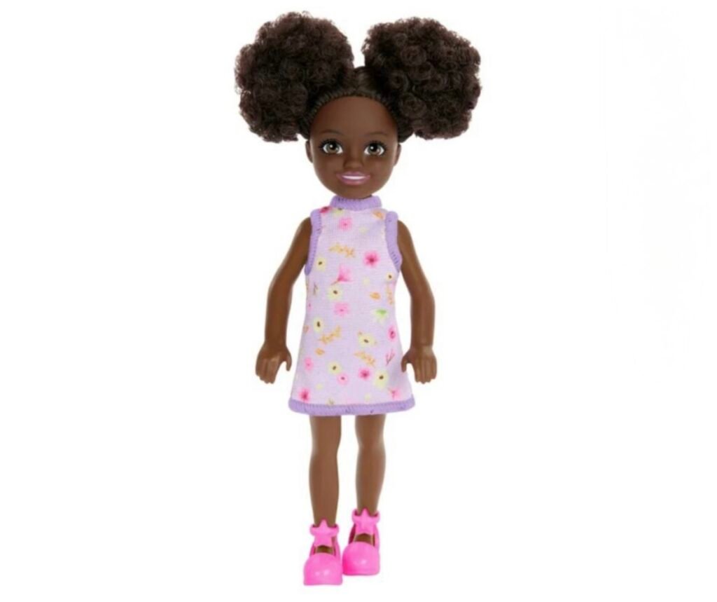Wearing Removable Purple Floral Dress with Space Buns & Brown Eyes