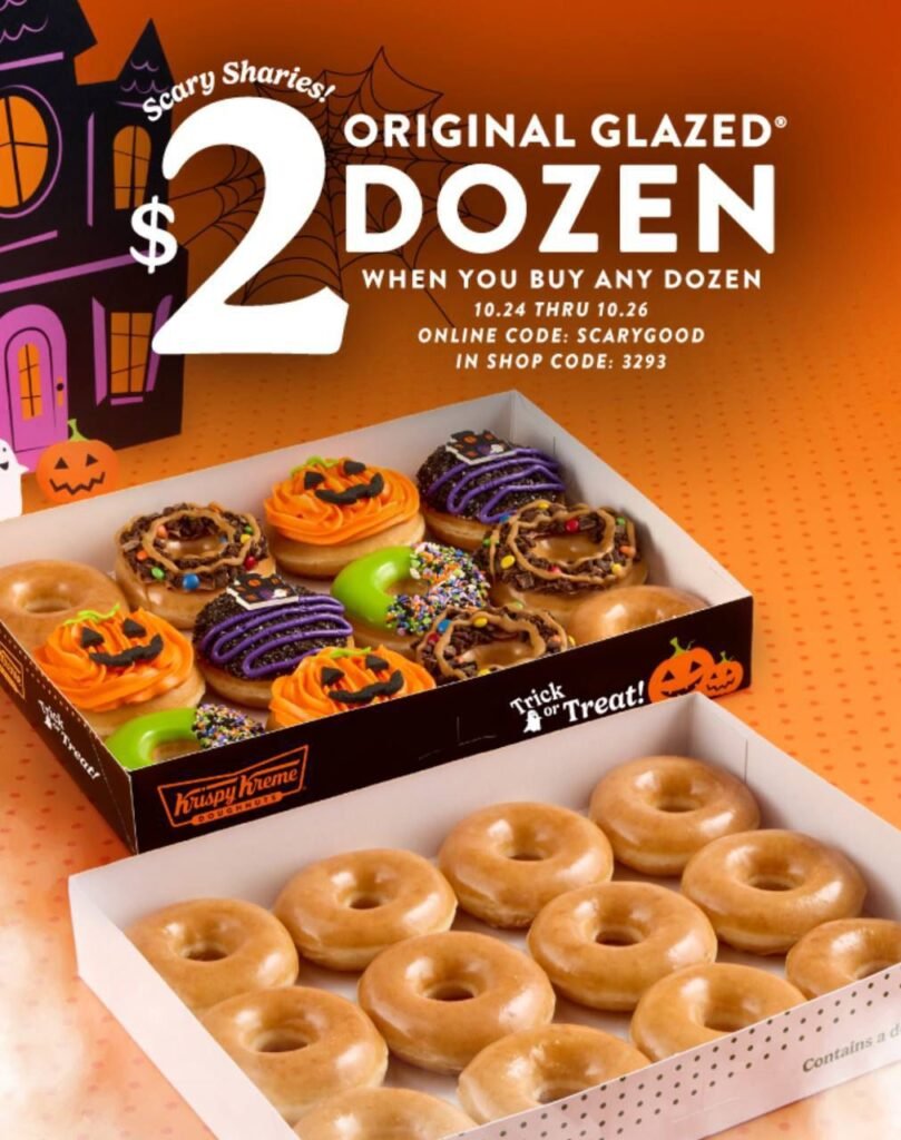 Craving something sweet? Krispy Kreme is serving up a scary good deal. Through October 26, you can grab an Original Glazed Dozen for just $2 when you buy any dozen doughnuts. Simply use promo code: SCARYGOOD at checkout in store, online, or through the app.
