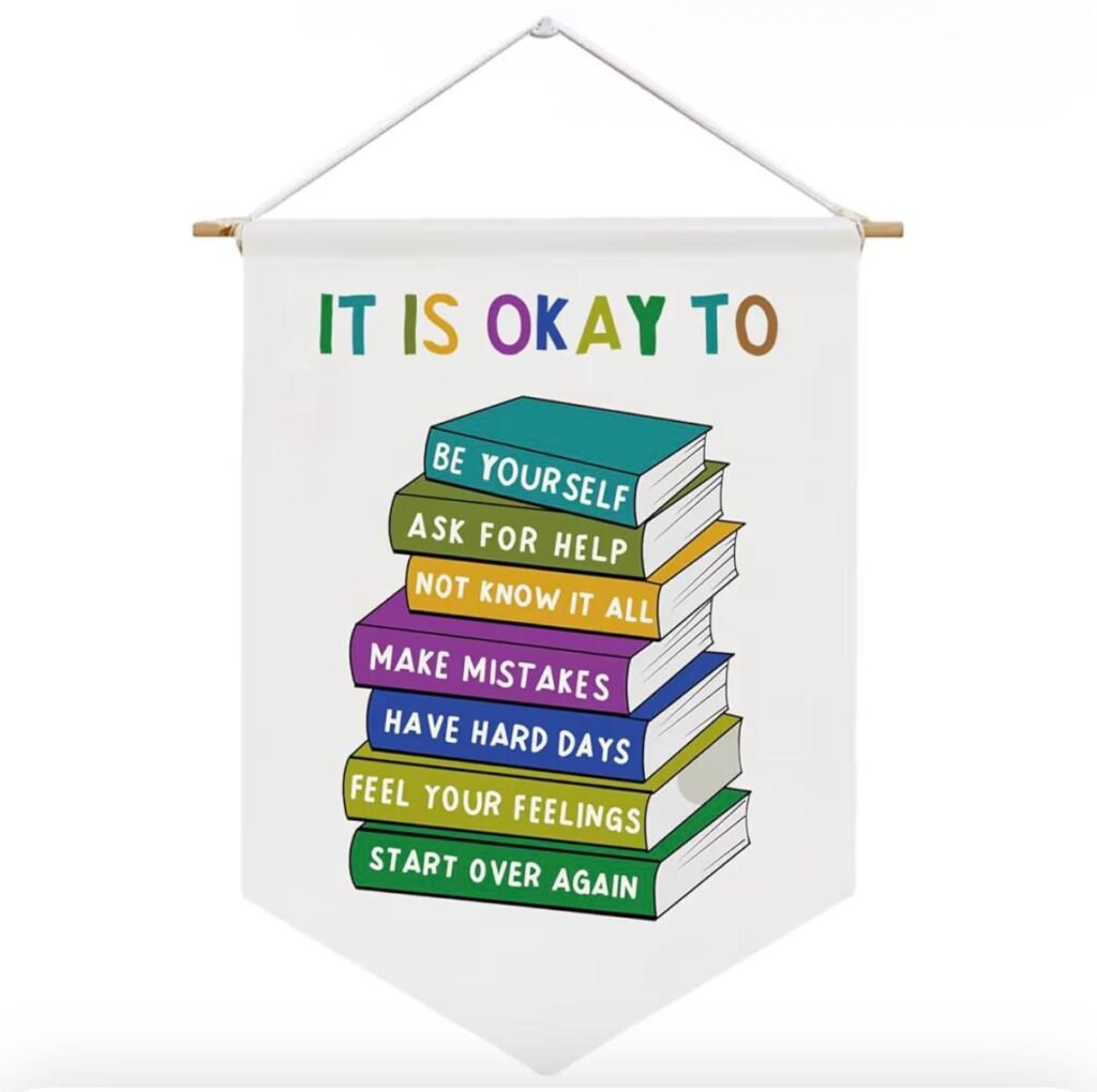 - Motivational canvas wall hanging banner with the phrase It’s Okay to Be Yourself