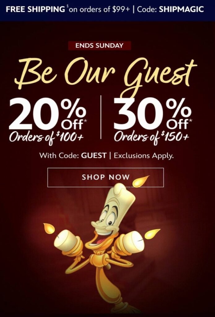 20% off $100 and 30% off $150 at the Disney Store!