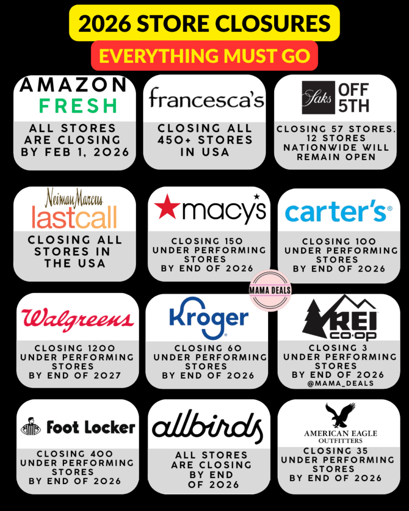 Retail is changing fast — and 2026 is shaping up to be one of the biggest years for store closures, downsizing, and restructuring across the United States.