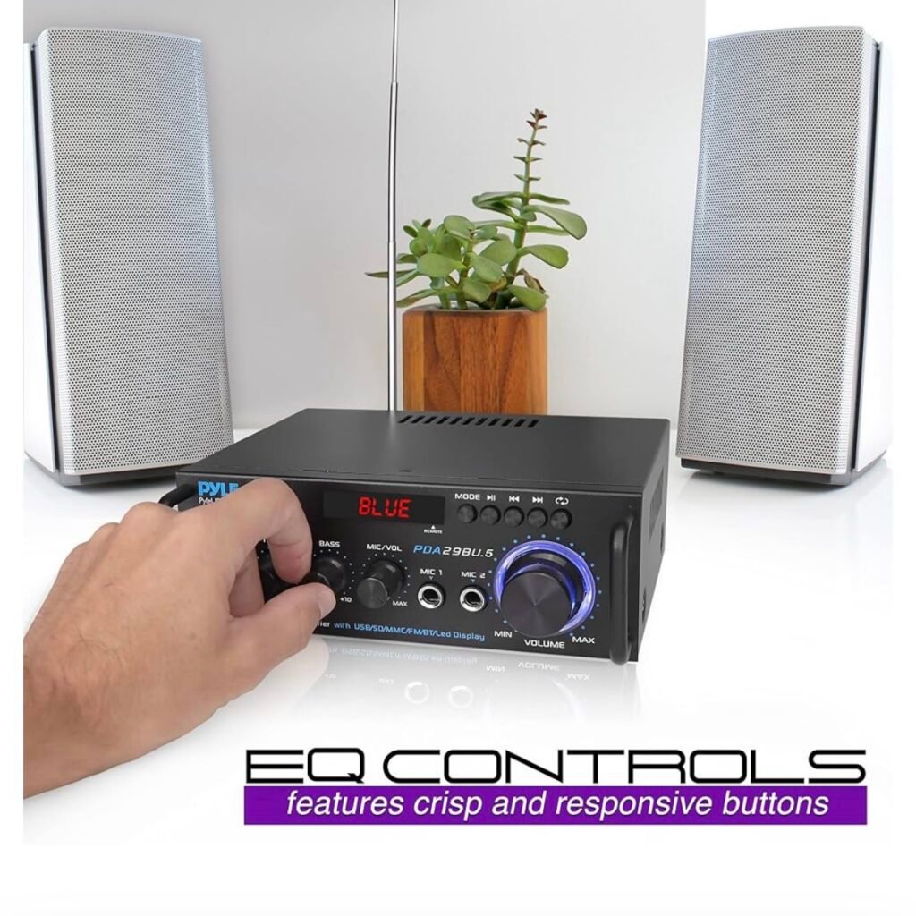 $23.97 reg $51.99 Pyle Stereo Power Amplifier 200 W Peak w/ Bluetooth Wireless, LED Display, Dual Channel Audio Stereo Receiver w/ RCA, USB, SD, MIC in, FM Radio,