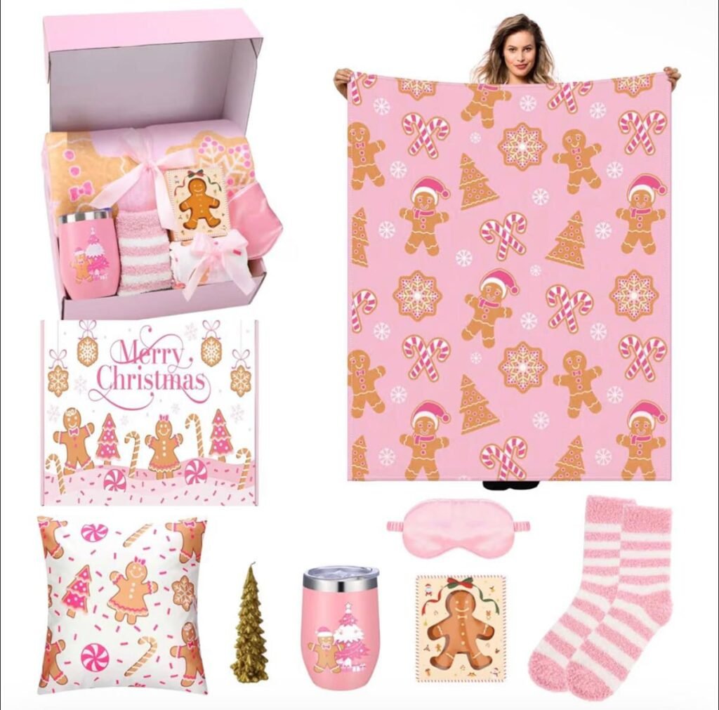 This adorable 8-piece Pink Gingerbread Gift Set is available for $23.xx at Amazon and makes a charming holiday décor or gifting option. The set includes cute gingerbread-themed pieces in a soft pink palette, perfect for decorating shelves, trays, or festive displays.