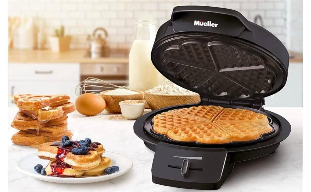• $24.99 reg $39.99 Mueller Heart Waffle Maker, 5 Waffle Iron, Adjustable Browning Control & Nonstick, Cool Touch Handle, Easy to Clean, Small Kitchen Appliances