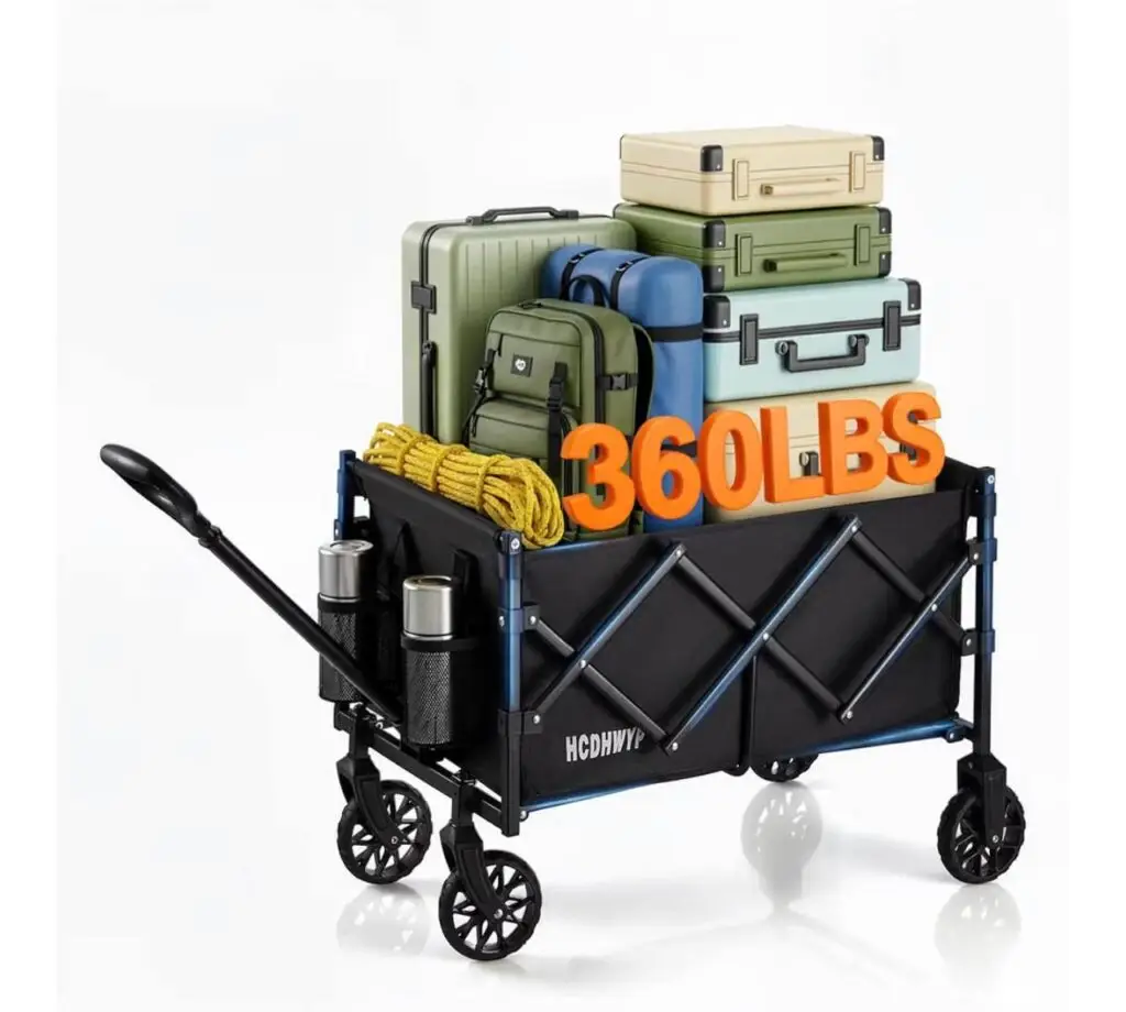 Make transporting gear easy with this collapsible heavy-duty wagon cart, now at a discounted price. Its durable design and PVC wheels make it perfect for trips to the park, beach days, gardening, or hauling groceries, while the collapsible feature ensures easy storage when not in use.