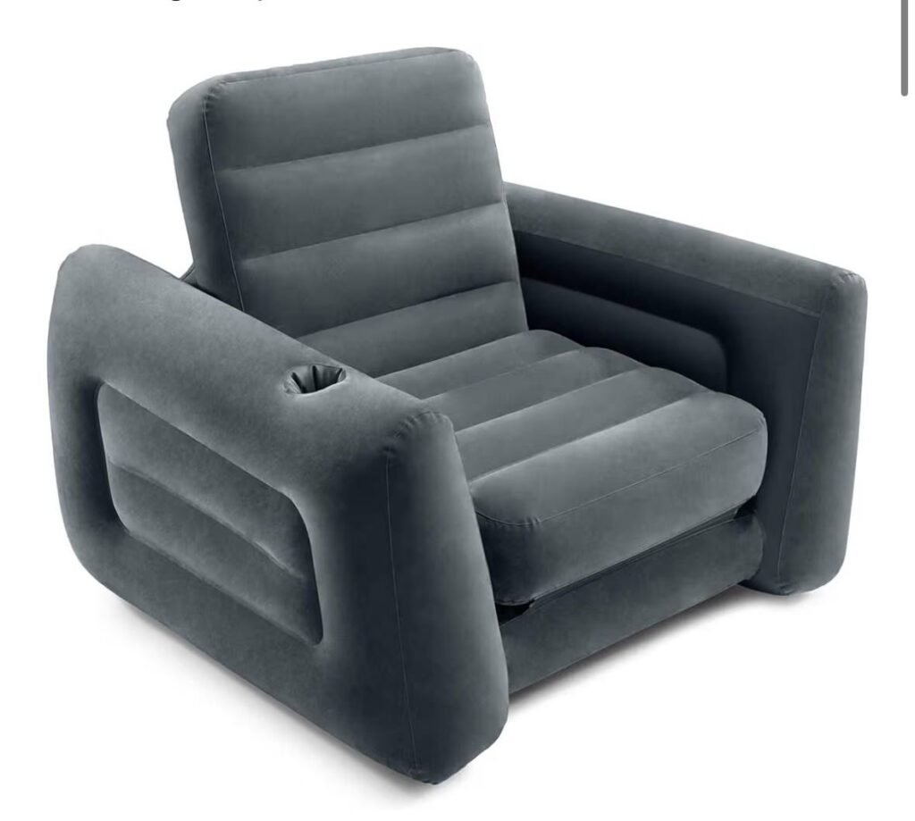 Relax in comfort with the INTEX Inflatable Pull-Out Chair, designed to provide ample space and convenience for lounging. Perfect for sleepovers, guest accommodations, or casual relaxation, this inflatable chair easily transforms into a full-size sleeping area. It features a built-in cupholder for drinks, keeping essentials close by while you relax. Lightweight and easy to inflate, this chair offers portability and comfort without taking up permanent space in your home.