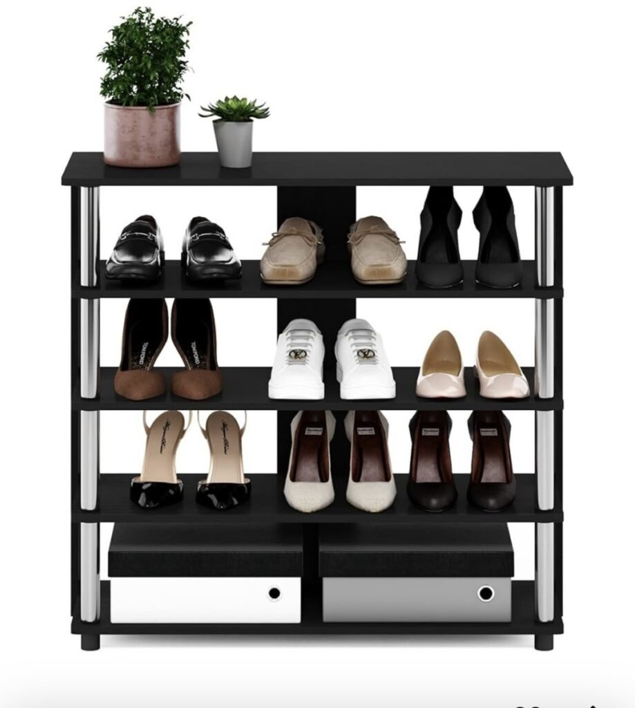 $26.52 Reg $75.99 Furinno Turn-N-Tube 5 Tier Wide Shoe Rack, Americano, Stainless Steel Tubes