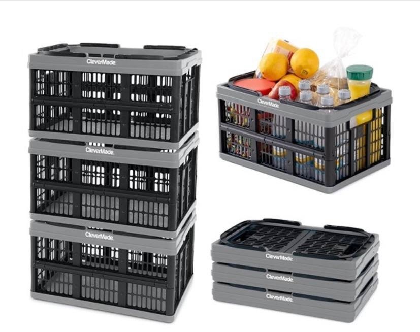 $26.99 CleverMade 3PK Collapsible Shopping Basket – Stone