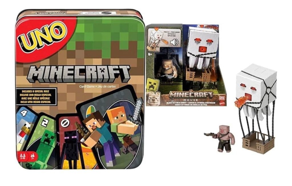 Looking for the perfect gift for Minecraft fans? This exclusive Amazon bundle includes the UNO Minecraft Card Game (Amazon Exclusive) and the Blast Attack Ghast Action Figure Set with Piglin Warrior. It’s the ultimate combo of gameplay fun and collectible action figures.