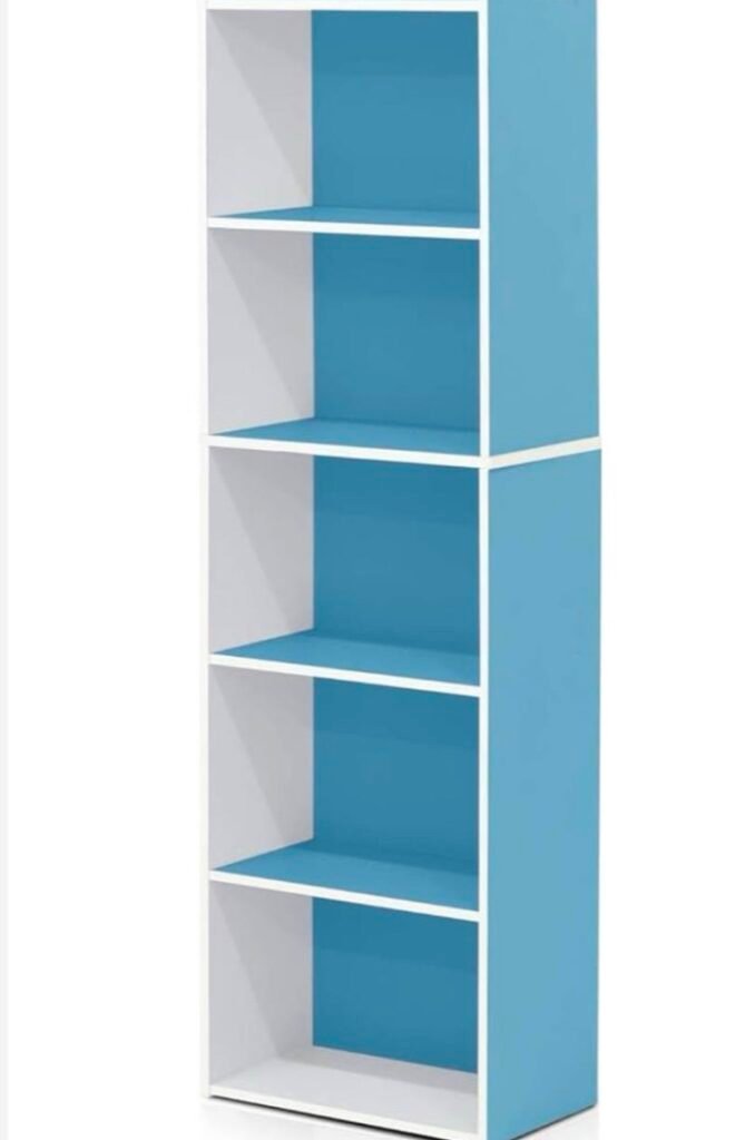 $27.29 reg $89.99 Furinno Luder Bookcase / Book / Storage , 5-Tier, White / Light Blue