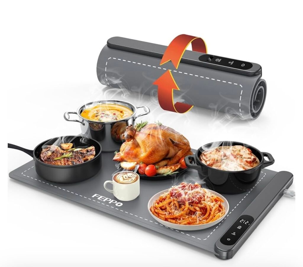 Upgrade High-tech Graphene Heating, Fast Full Surface Electric Warming Tray with 6 Level Adjustable Temperature and 6 Hours Timer