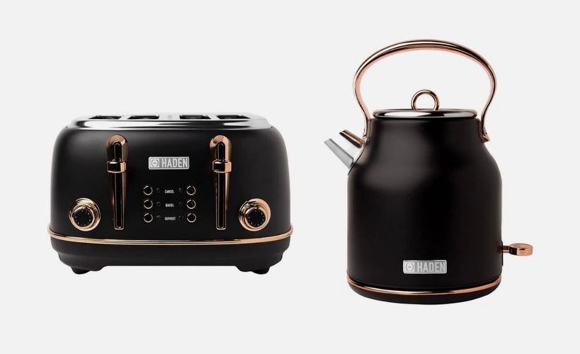 $28.89 Haden Heritage 4 Slice Wide Slot Toaster & Electric Kettle, Black & Copper