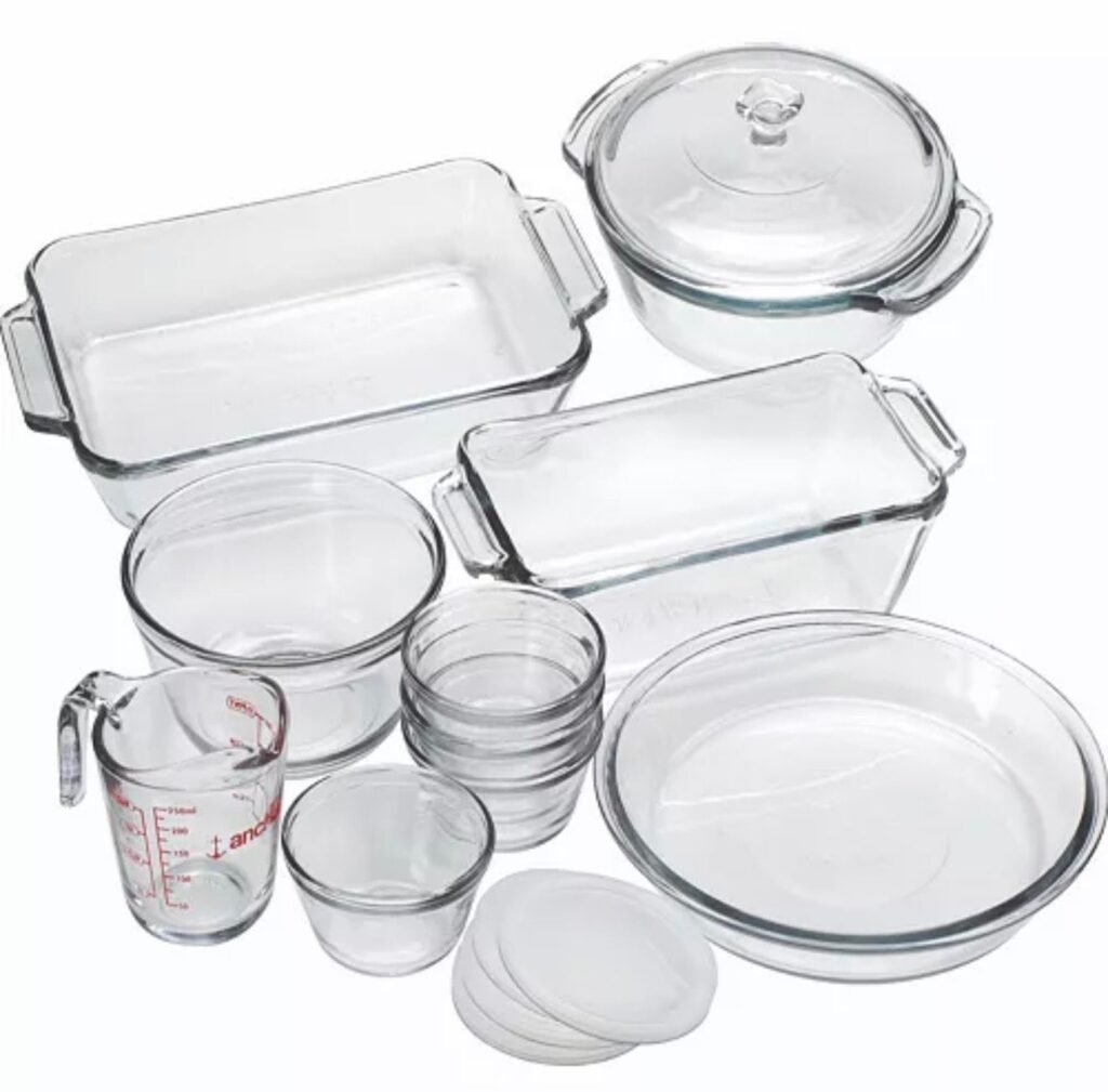 - 15-piece glass bakeware set ideal for baking, serving, and storing