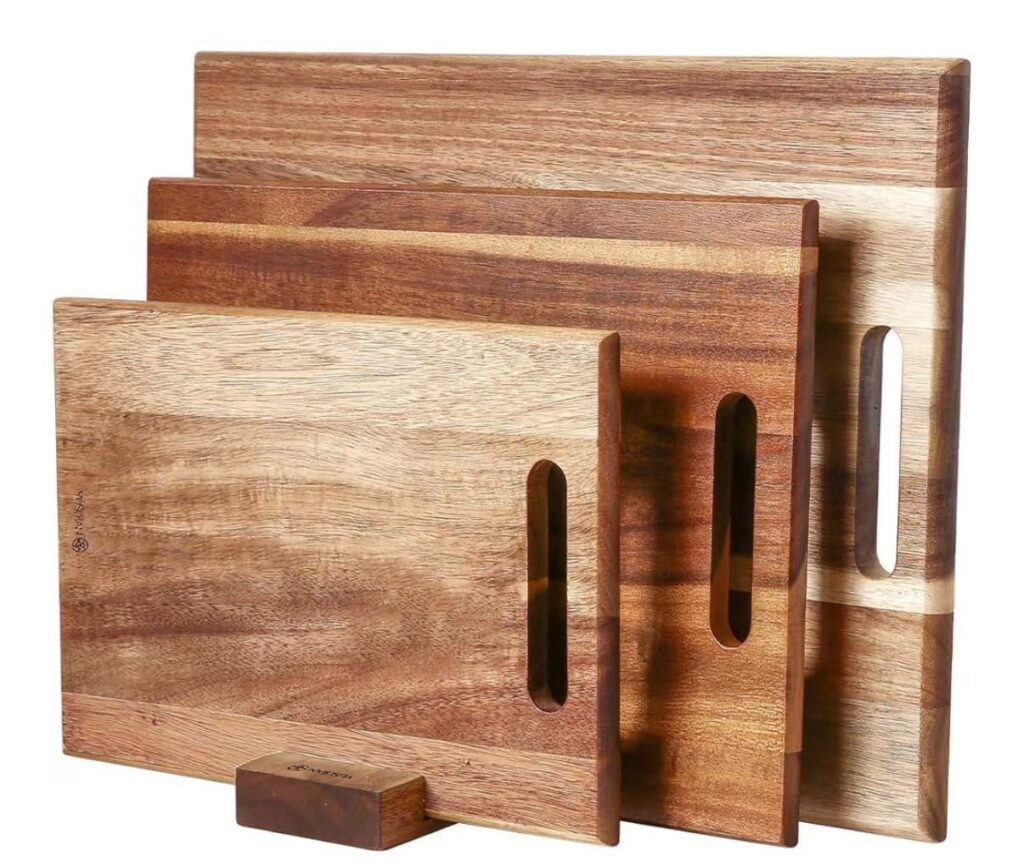 - 3-piece cutting board set made from durable acacia wood