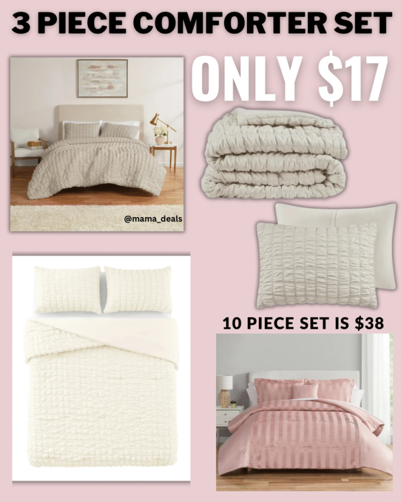 $17.04 Mainstays 3-Piece Seersucker Comforter Set, Stone, F/Q, All Ages, Unisex