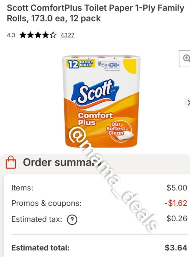 $3 Scott ComfortPlus Toilet Paper 1-Ply Family Rolls