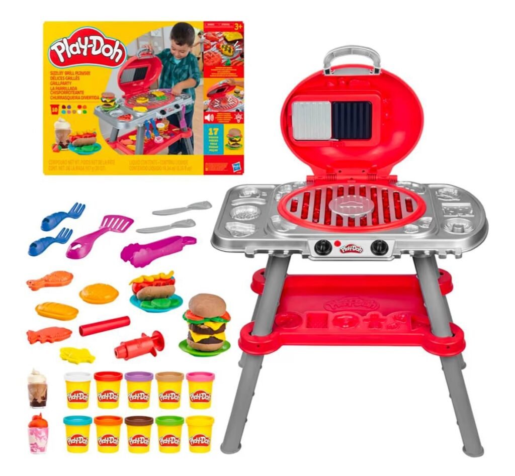 • Play-Doh Sizzlin’ Grill playset includes lights and sound effects for a realistic grilling experience